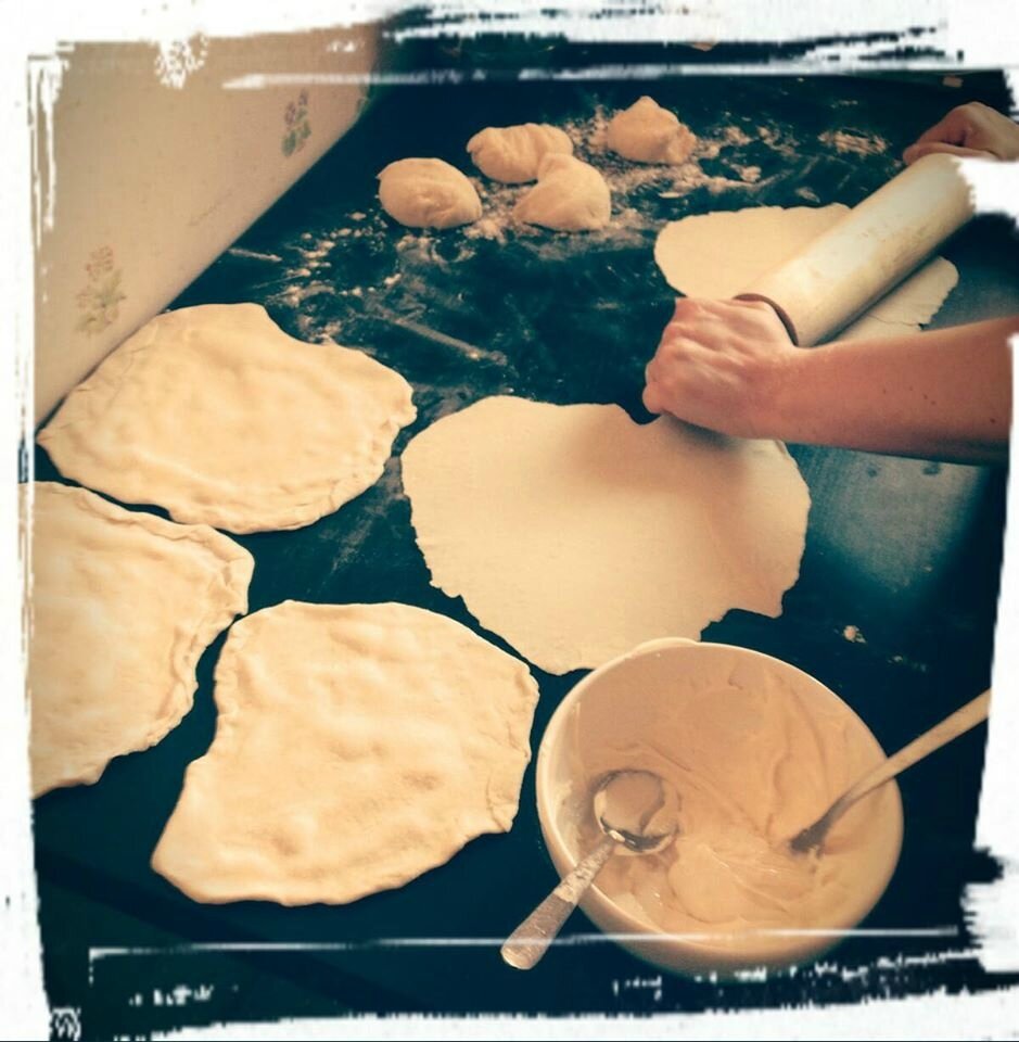 Au bout de 2h, prendre votre pâte et la dégaser du bout des doigts. Former 12 petites boules de la taille d'une mandarine. Disposer les petites boules sur un plan de travail fariné afin de commencer à abaisser la pâte.